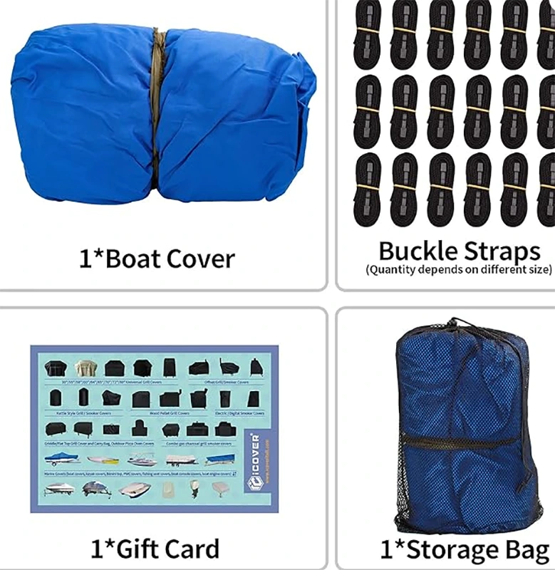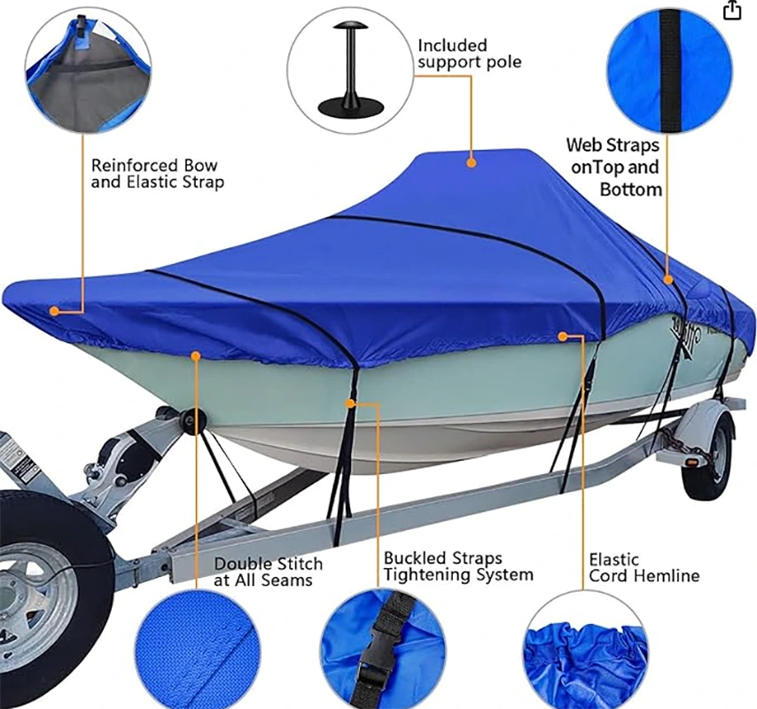 Šírka lúča Vodotesný kryt člna Kryt na jachtu, Kryt na príves, Kryt na ťažký čln 600D Hodí sa na čln so stredovou konzolou V-Trup 20 stôp až 22 stôp a na šírku lúča až 116 palcov, výška čelného skla až 30 palcov, vrátane nosnej tyče krytu člna.