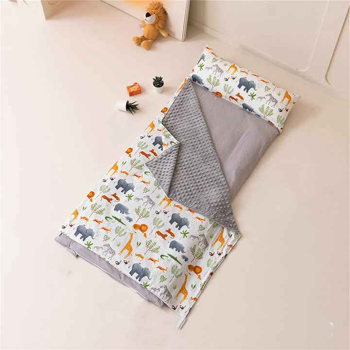 Blue Toddler Camping NAP Bag Design Rollup umožňuje podložke ľahko cestovať, ako aj pohodlné upevňovacie uzávery a prepravné rukoväť.