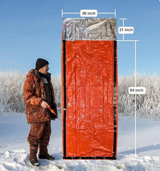 Spaľkový vrecko pre prežitie môže zvýšiť vaše šance na prežitie za všetky počasie, všetky ročné obdobia a všetky okolnosti. Je vyrobený z trvanlivého izolačného materiálu Mylar navrhnutý NASA na prieskum vesmíru. Zachováva / odráža späť 90% telesného tepla. Je opakovane použiteľný, vodotesný a odolný voči vetru.