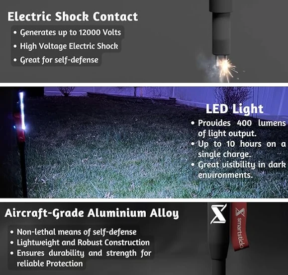 Dva režimy dostupné na LED: jasne biele svetlo ideálne na kempovanie a červený/modrý blesk pre núdzové situácie, vďaka čomu je efektívnym nástrojom pre sebaobranu nočných tyčiniek.