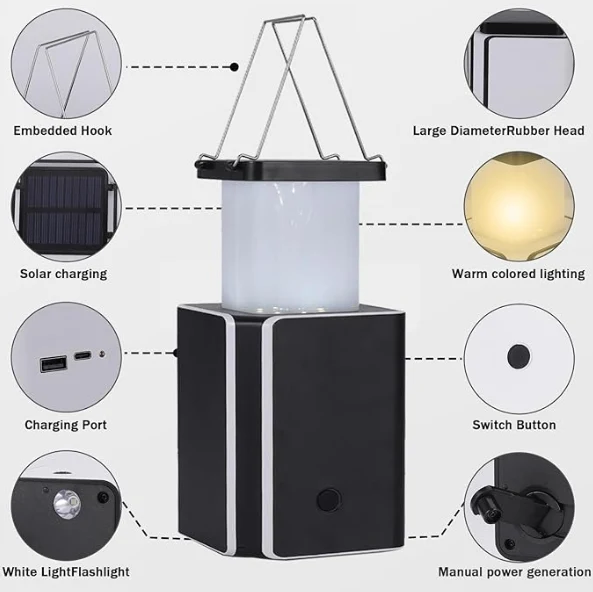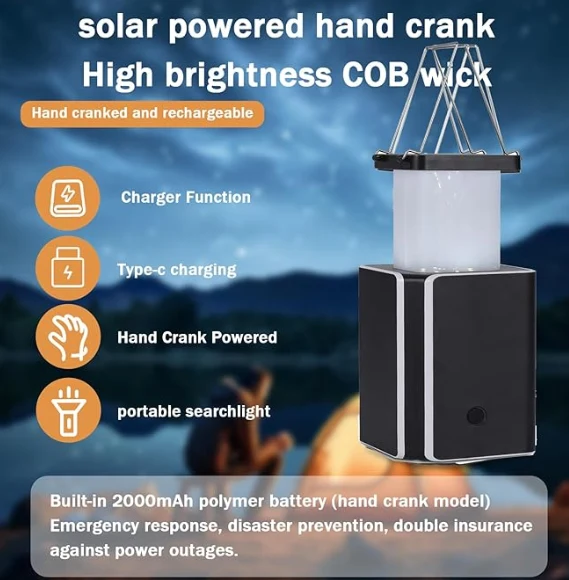 IPX4, núdzové svetlá ručne generovanie energie, mobilná funkcia napájania napájania mobilného telefónu ,, núdzové svetlá, baterky, výstražné svetlá SOS., Solar LED nabíjateľné pohotovostné kempingové lampy, solárne nabíjateľné, dobíjateľný typ C,