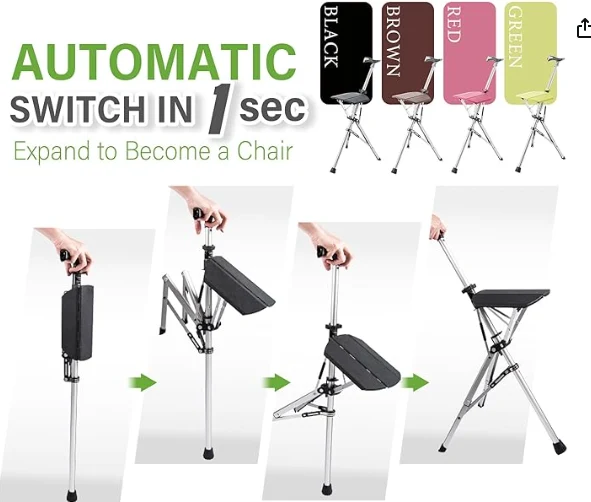 Starí muži Alpenstock Trekking Cane, odpočinok a turistická palica na podporu. Tento dizajn, ktorý okamžite premieňa turistickú palicu na stoličku s snímkou, ponúka odpočinok pre unavené nohy a kolená v okamihu.