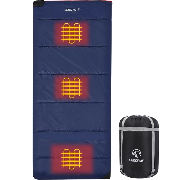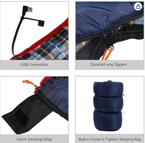 Prenosná vyhrievaná vodotesná spacáčka, stlačením tlačidla, čo vám uľahčuje nastavenie teploty podľa vašich potrieb, čo prináša teplo a pohodlie celú noc.