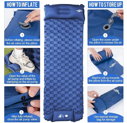 Prenosná nafukovacia kempingová podložka TPU Táto kvalitná prenosná kempingová podložka je perfektná, skvelá robustná a super pohodlná - skvelá pre akúkoľvek pozíciu spánku!