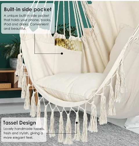 Šitie visiaci padáka v hojdacej sieti. Stačí nájsť vetvu, lúč alebo hojdaciu sieť, skvelú výkyvnú stoličku pre vonkajšiu alebo vnútri. Je veľmi vhodný na použitie v spálni, ako dekorácia miestností, balkóny, nádvoria a záhrady. Ak potrebujete návrat, neodstraňujte značku z kresla Swing