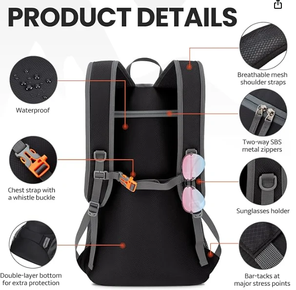 Vodotesný turistický skladací batoh, klip na hrudi s píšťalkou pracujú perfektne na distribúcii hmotnosti balenia a jeho udržiavaní stabilného a centrovaného. Musí mať pre šport, turistiku a kempingzhejiang Jiayu Outdoor Products Co., Ltd. Zvýšenie viditeľnosti počas nočných outdoorových aktivít. Tento dizajn zaisťuje, že zostanete viditeľní pre ostatných, a zvyšuje sa bezpečnosť, keď ste mimo tmy